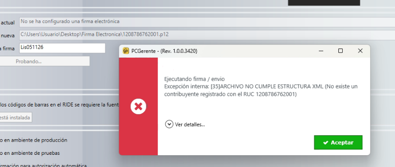Estoy subiendo una firma electronica a mi sistema nuevo, pero me sale este error