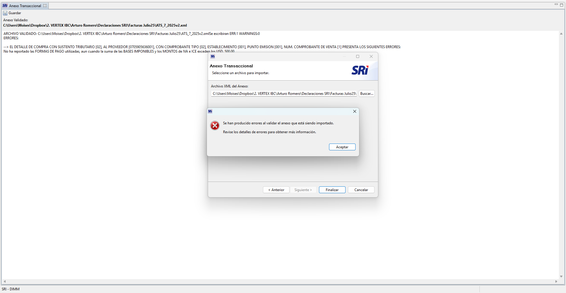 este es el error al validar el ats