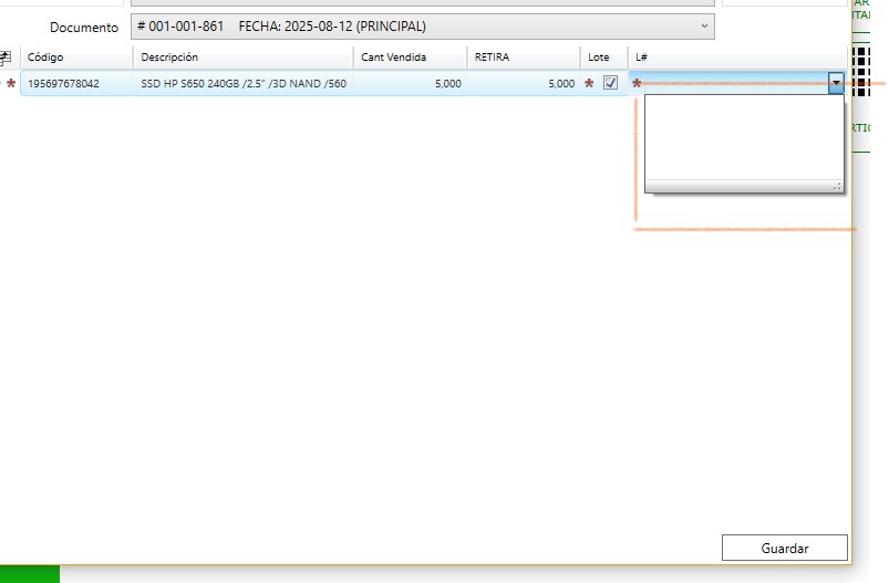 Disculpen, no puedo guardar un retiro de venta anticipada veo que el campo Lote sale vacío