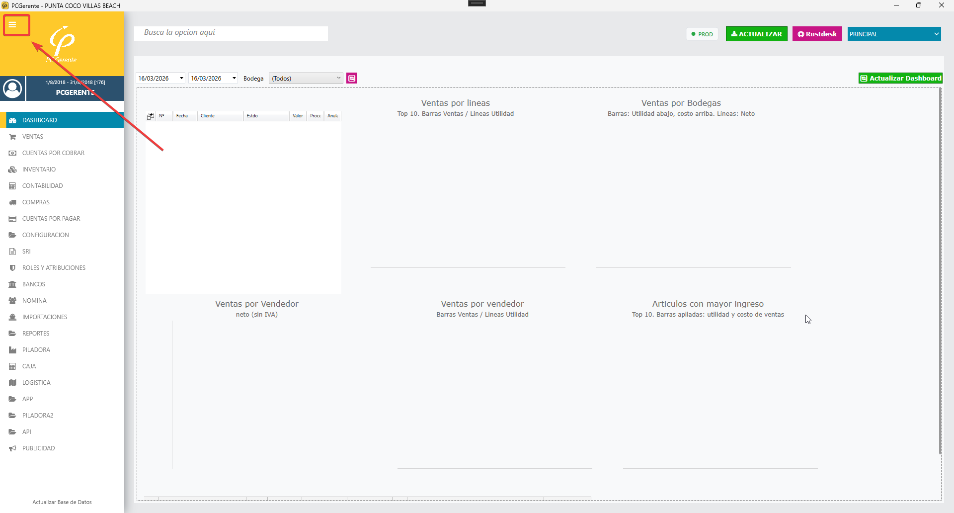 Pero puede recoger el menú de la izquierda (los módulos)